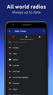 We gladly introduce you Daily Tunes: All Online Radios, an application with nice, polished and verified user interface. Designed for mobiles and tablets, this app has all the features that you expect. We focus on simplicity and compact look.
